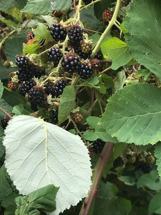 The ubiquitous blackberry, which grows so prolifically along our roads, might be seen as the world’s tastiest weed. I have two favorite picking spots: one along the west edge of my property and the other along the east edge. I can pick up to half a gallon in about 30 minutes from them. Then my wife works her magic!